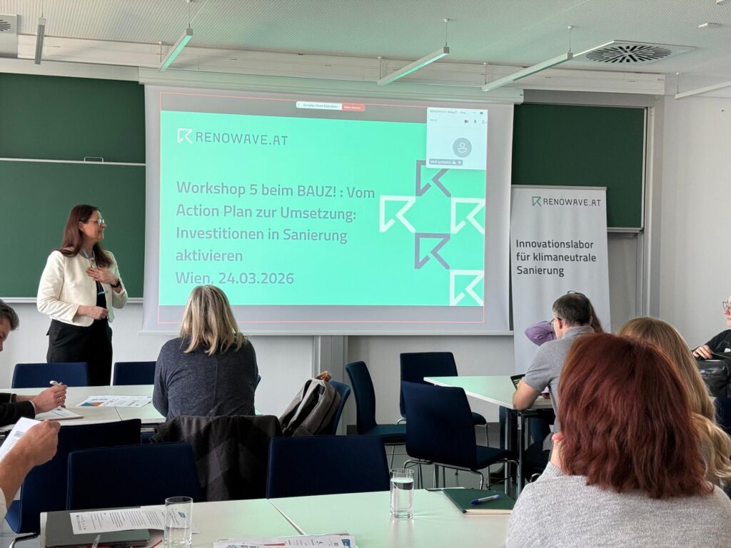 Wie können Investitionen in die Gebäudesanierung in Österreich wirksam aktiviert werden? Dieser Frage widmete sich ein BAUZ! Workshop im Rahmen des EU-Life-Projekts RENOINVEST unter dem Titel „Vom Action Plan zur Umsetzung: Investitionen in Sanierung aktivieren“. Veranstaltet wurde der Workshop von Renowave.at in Kooperation mit der Partnerorganisation IIBW.