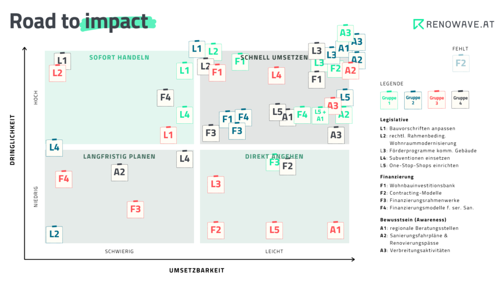 Dabei wurden Dringlichkeit und Umsetzbarkeit als zentrale Kriterien herangezogen. Ziel war es, konkrete nächste Schritte zu identifizieren – von sofort umsetzbaren Maßnahmen bis hin zu langfristigen Strategien.